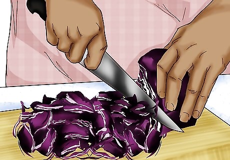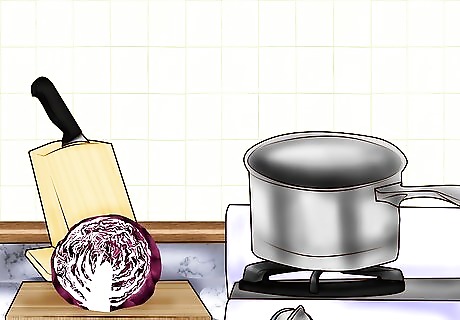 Chop up some cabbage. You want about 2-3 cups of red cabbage cut into small pieces. If you are young, have an adult help you with this step to avoid potential injury. The exact amount of cabbage is not important, so just cut up half of the head of cabbage.