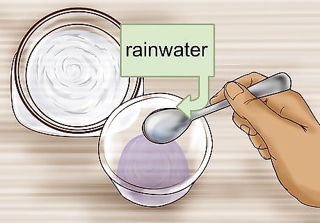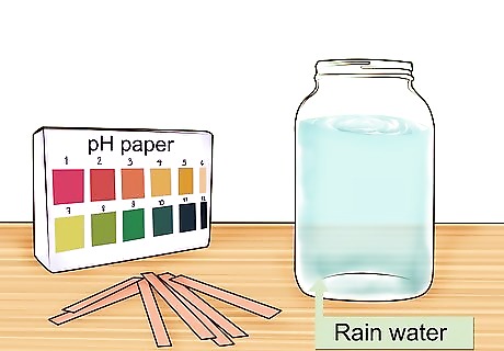 Collect some rainwater. During a rainstorm, place a clean container outside at a height of at least two meters (six-and-a-half feet). Placing the bucket up high prevents dust and dirt from getting into the rainwater. These contaminants can affect the pH of the water. Collect at least one cup (250 mL) of rainwater for measurement.