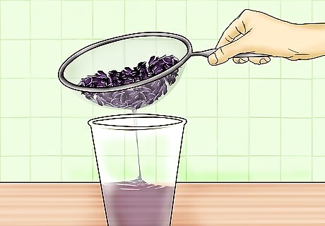 Strain out the cabbage and save the water. Pour the cabbage and water mixture through a strainer into a bowl. The purple water (the indicator) is currently neutral because the water from your tap is neutral. In the presence of an acid, the indicator turns pink. In the presence of a base, the indicator turns blue. You can refrigerate the solution until you need it.