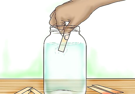 Dip the pH paper into the collected rain. Take a single strip of pH paper from the stack and dip it into the rainwater for about two seconds. The color should change immediately and then you should proceed to the next step. If you let the strip sit for too long without looking at the chart, the color might change. Try the test at least three times and see if they all come out the same color. If the strips do not come out the same color, the strips may be expired and you’ll need to buy new, fresh strips.