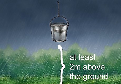 Collect rain in a clean container. To test the acidity of your rainwater, you want to obtain a sample that is free from contaminants. Place a clean jar or bucket outside while it is raining. Make sure the bucket is at least two meters (six-and-a-half feet) above the ground to prevent contamination from dirt and dust. Place the bucket on a table or hang it above the ground. Contaminants can alter the pH of the collected rain.