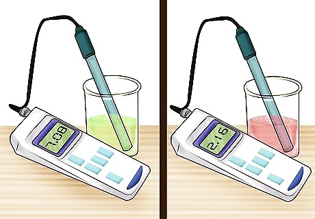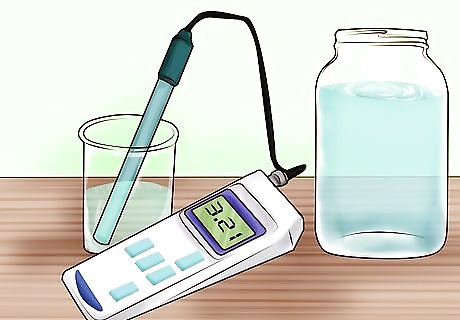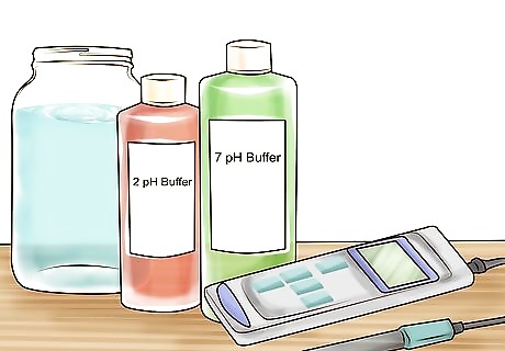 Calibrate the pH meter. Before using a pH meter, it must be calibrated so that it gives you the correct reading of your sample. Each meter is different but the general calibration process is the same. First, rinse the electrode of the meter with water and then place it into a buffer with a known pH of 7.0. Set the readout display to 7.0 so the meter knows that this is what a neutral pH is. Repeat this process with another buffer that is acidic (around pH 2.0). Some meters may also require that you calibrate with a buffer that is also basic (around pH 10.0). Always rinse the electrode between solutions.