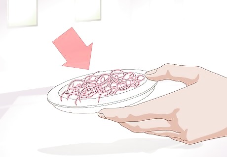 Teach your betta to jump. Jumping is a natural habit for betta fish. To train your betta, use a feeding stick and place half a bloodworm on it. The food should be within reach of the fish. Starting with the stick underwater, have your betta come to you. With the next try, move the feeding stick closer to the water's surface. Have your betta swim to you. Then move the stick to the water's surface. Your betta should swim to you. Lastly, move your stick slightly above the water surface. Once your betta recognizes that they can get food from the stick, they will jump for it even if the stick is out of the water. After they nail the trick, you can substitute your fingers for the stick. This trick may not be recommended as you will need a lid for if they jump, so if they think jumping gets them food, then bam, you have a betta that always jumps and may get out of the tank and die. By halving your bloodworms, you can avoid over-feeding your betta. Remember, they should have a maximum of three to four bloodworms in one sitting. You can train your betta to recognize a feeding stick, a thin stick with a curved end for attaching food, during their normal feeding times. Bettas naturally jump when water conditions are not good. Purchase a lid for your fish tank to prevent your betta from jumping from the tank. They can still jump when you remove the lid to feed them.