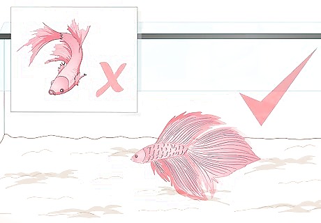 Check your fish's well-being. Make sure your fish's color is bright and clear. It's fins should have no tears or holes. The scales should be smooth. Your fish should not move in a sluggish manner. Instead, they should swim quickly. Bubbles on the water's surface are a good sign that your betta has reached sexual maturity, it does not mean that they are happy. If you want to train your betta, they need to be in top condition.