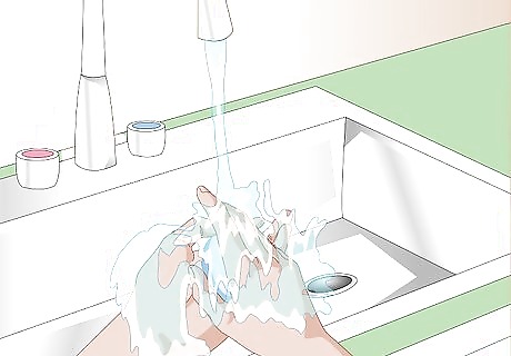 Wash your hands. Before you work with your fish or are near her tank, wash your hands. Use hot water but do not use soap. Soap is toxic for fish. When you finish a training session, wash your hands with soap.