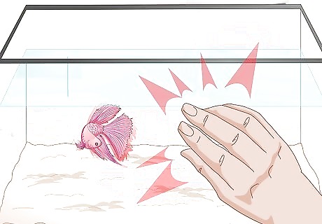 Get your betta's attention. Softly tap on the glass and see if they look at your hand. If not, give them half a worm or a treat to get their attention. Once they focus on your hand and their gills move quickly, you can begin training. Do not tap very hard or hit the tank repeatedly. You will shock your fish.