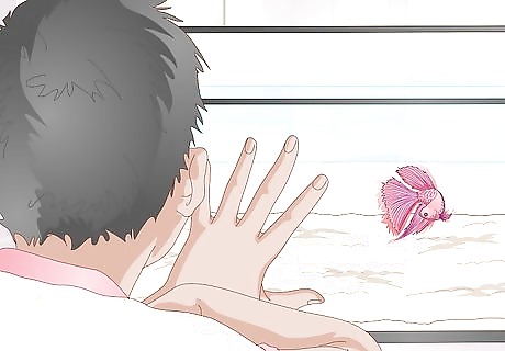 Get to know your betta. Although it might surprise you, betta fish can recognize you. They actually can become attached to their owners. If you spend time near your fish, they are more likely to recognize you. This will help in training. If you have just acquired your betta, give it at least a week to recognize you. You will know that your betta is ready if he or she starts swimming towards you if he/she sees you.