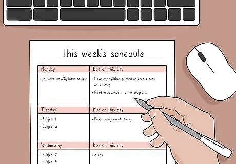 Check your class syllabus for online due dates. Depending on the type of class you’re taking, you may have online assignments to complete every class period or every week. Keep track of your assignments on your syllabus so you don’t miss anything, as your professor might not remind you about deadlines. Your syllabus can also help you track when you need to study for midterms or a final. It may be helpful to print out your syllabus so you have a physical copy.