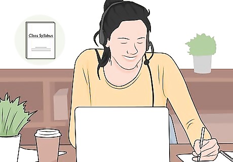 Participate in class virtually through your online learning tool. Participation is still required for most online classes, and it can take the form of attendance during lectures, online discussions, or submitting assignments on time. It can be easy to forget about participation, so make sure you’re doing everything you can to keep your grades up. If you aren’t sure how your participation is being graded, check your syllabus. Staying motivated to participate online can be tough. Remember that online classes still affect your GPA, even though they seem different from in-person classes.