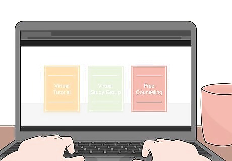Use your online resources. As colleges transition to online classes, most of them have set up online resources to help with tutoring, studying, and course work. Check out your college’s website to see what resources are available to you and if they’re helpful for your area of study. You may be able to do virtual tutoring or form virtual study groups online through your college’s website. You may also be able to get free counseling online through your college website.