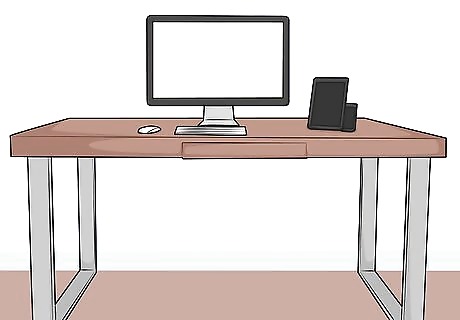Set up a dedicated work area. If you have the space, try setting up a desk with a chair to put your computer on while you work. This will help you keep your school and personal life separate, and it can also trick your brain into getting focused once you sit down in front of your computer. Not everyone has the space to dedicate an entire area to schoolwork, which is okay, too.