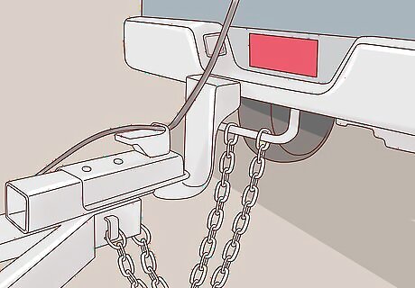 Double-check that tow trailers have been properly connected. Turn the crank on the back of the trailer clockwise to raise the coupling. Align the coupling with your trailer hitch, then turn the crank counterclockwise to lower it into position. Take a moment to ensure that the two components fit together squarely. After hooking up the trailer, secure the connection site by sliding the latch pin into the slot at the top of the coupling. If you’re going to be using your own vehicle to tow a horse trailer, study the vehicle’s specifications to find out whether its towing capacity is equal to the trailer’s Maximum Authorized Mass (MAM). For additional security, consider winding a length of chain around the hitch to act as a fail safe in the event that the trailer somehow comes uncoupled. You can’t afford to rush your trailer hookup—the last thing you want is to slip a hitch on a busy highway or interstate with your horse in tow!