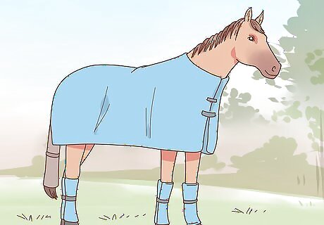 Dress your horse from head to hoof with protective travel clothing. Slip a breakaway head collar onto your horse, along with poll, tail, and leg guards. Custom wraps or boots are another option. Make sure the accessories you’re using are the right fit for your horse and appropriate for the weather and the conditions inside the trailer. If it’s cold outside, you can also throw a couple blankets over your horse for added coziness and protection. Keep in mind, however, that temperatures can climb quickly inside a stuffy truck or trailer—you don’t want your horse to overheat. Protective travel clothing is a must anytime you take your horse on the road, as it minimizes the risk of a severe injury during travel.