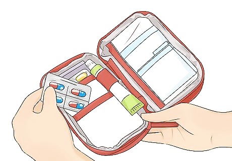 Keep any necessary medications on you at all times. Make sure that you are stocked up on any medications your child will need while traveling. If you are traveling by air, keep the medications in your carry-on. Lost baggage can otherwise be a disaster. Bring along a supply of medications that will last for the entire time away, with some extra in case anything unexpected happens. You should also carry extra prescriptions for these medications in case the medications get lost or you need to extend your trip. If you are traveling in areas that impose restrictions on the amount of liquid you can carry onto a plane, get a note from your doctor verifying the necessity of the medication in advance of your trip. In most countries, these restrictions do not apply to medically necessary liquids, such as medications.