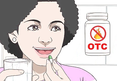 Take an over-the-counter anti-inflammatory medication. Ask your doctor to recommend an over-the-counter medication and dosage amount. Common over-the-counter medications include NSAIDs like ibuprofen and aspirin. Take it to relieve pain and inflammation according to your doctor’s instructions or as the label directs. An over-the-counter medication won’t cure adhesive capsulitis, but it’ll help relieve your symptoms during treatment. It is especially useful for temporarily relieving pain symptoms.