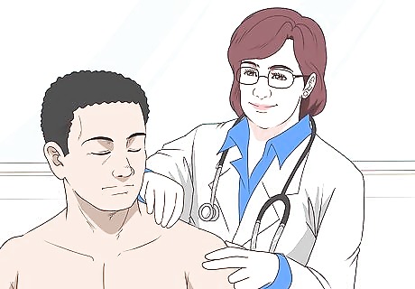 Have a doctor examine the affected shoulder. See your doctor if you experience shoulder pain or stiffness. They’ll check your active and passive ranges of motion by having you move your shoulder on your own and with their assistance. Let them know which motions cause pain or stiffness. You’ll also need to tell the doctor about your medical history. People with diabetes, thyroid issues, and heart disease are more likely to develop frozen shoulder. It’s also more likely to occur if you’ve recently had a shoulder injury.