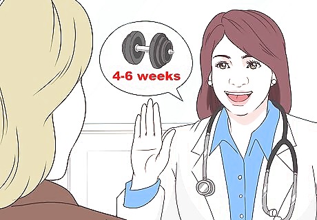 Avoid strenuous activity for 4 to 6 weeks. You’ll need to avoid exercise, lifting heavy objects, and other strenuous activities to allow the surgical site to heal. Ask your doctor about which activities you should avoid and when you can begin resuming them. Call your doctor promptly if you’ve aggravated the surgical site, if it starts to bleed uncontrollably, or if you notice worsening redness or a discharge from the incision.