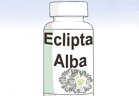 Apply Eclipta alba. This supplement, also known as false daisy, is a well-known Ayurvedic remedy for hair loss. In a number of scientific studies, Eclipta alba was shown to promote hair growth and reverse baldness. Mix the extract with olive or coconut before applying it to your scalp. Follow the manufacturer’s guidelines when applying Eclipta alba.