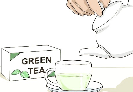 Drink green tea. Certain studies have found that green tea may promote hair growth. Try drinking a cup or two a day. However, there is no conclusive evidence identifying green tea as a cure for baldness. Brew green tea in boiling water for best results.