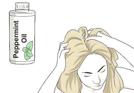 Rub peppermint oil on your scalp. This oil is thought to improve blood circulation to the scalp and stimulate hair follicles. However, there is no clinical evidence to support peppermint oil as a cure for baldness. Apply 3-4 drops of oil each day or follow the manufacturer’s guidelines. For best results, mix with sage, rosemary, and a tablespoon of olive oil.