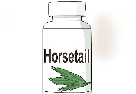 Take horsetail. This supplement is believed to strengthen bones and treat osteoporosis. Because of this, it also believed to promote hair and nail growth. However, there is no clinical evidence that horsetail prevents baldness, strengthens hair or promotes hair growth. For best results, take one capsule once a day or follow the manufacturer’s instructions.