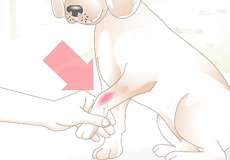 Stay calm. Just like people, dogs can sense fear. If your dog becomes anxious or distressed, his blood pressure may rise and this can cause more blood to be expelled from a wound. Keep yourself and your pet calm.