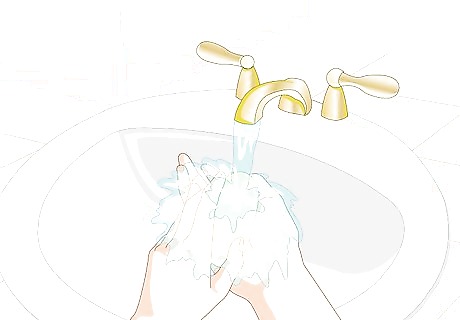 Clean the wound. After you are finished removing the surrounding fur, set the scissors or clippers aside and run the water until it is warm to the touch. Hot water or cold water will be painful, so avoid these temperature extremes. Run water over the wound for two to three minutes to remove any visible and invisible contaminants, and then gently wash with antiseptic for a minute. Too strong antiseptic can be damaging to tissue, so always following the directions on the label for the correct dilution Rinse again for two to three minutes and then turn the water off.