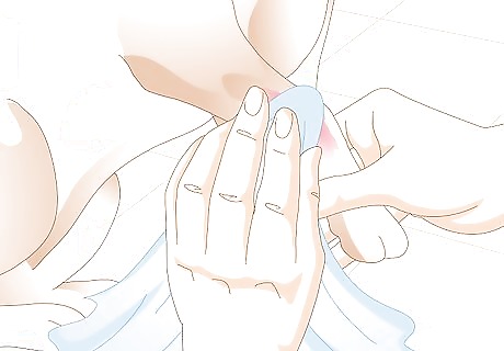 Remove the fur around the wound. Place the dog in the bathtub or sink without running any water. Use a towel or bath mat on the sink or bath bottom to provide secure footing if needed. You may want to have a second person hold your dog steady while you work at carefully clipping the hair away from the wound edges. Remove an inch of hair around the wound. You can place the lubricant in the wound prior to doing so to keep the hair out of the wound. It will wash away when you wash the wound. The hair is clipped away to allow the wound to be seen easily, to keep hair from covering the wound, and to help when you need to wash away any drainage.