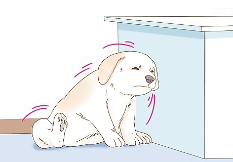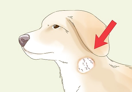 Look for red spots on your dog’s skin caused by excessive scratching. You may not always see your dog scratching itself, but inflamed red spots on the skin that are tender to the touch are telltale signs of scratching a lot. Look for these spots in commonly irritated areas, including your dog’s neck, the top of its head, its jawline, and down to its hind legs. You may also see what are called “hot spots” on your dog’s skin. These are areas of inflamed, infected skin that are caused by your dog’s natural bacteria and occur very often as a result of allergies.