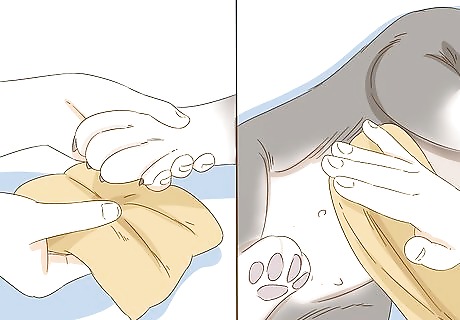 Clean your dog’s paws and stomach when they come in from outside. This is an easy and convenient way of removing allergens from your dog when they become exposed to them outside. Use a damp towel or cloth to wipe off any pollen, dust, or dirt from your dog’s body. Pay particular attention to your dog’s feet, since they are more likely to pick up allergens from outside. Make sure your dog’s feet are completely dry after you finishing wiping it down. If you have them, use fragrance-free, hypoallergenic pet grooming wipes to give your dog the most thorough cleaning possible.