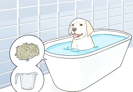 Give your dog an oat bath every 3 days to soothe itchy skin. Boil about 1 pound (0.45 kg) of oat straw in 2 US quarts (1,900 mL) of water and mix it in with your dog’s bathwater. In addition to reducing itching, an oat bath is also a great way to remove allergens from your dog after it’s been outside. Note that an oat bath should never be used on a dog with a yeast infection, since the carbohydrates in the oat will only make the infection worse.