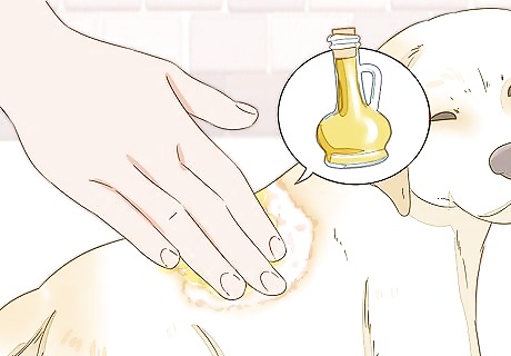 Rub coconut oil on your dog if it also suffers from flea allergies. Coconut oil, when applied topically to the skin, can help alleviate itchiness and reduce the inflammatory responses that come with allergies. It’s also particularly effective at reducing the allergic reaction to fleas, but it will also work to treat your dog’s seasonal allergy symptoms. The recommended dose for coconut oil is 1 teaspoon (4.9 mL) per every 10 pounds (4.5 kg) of dog weight. Before you apply the coconut oil, take your dog to the vet to make sure the skin isn't infected. If your dog has an infection on its skin, the coconut oil could possibly feed it.
