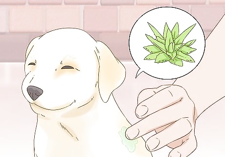 Try rubbing chickweed or aloe vera gel on itchy, inflamed areas. These gels have terrific anti-inflammatory and, in the case of aloe vera, antibacterial properties that make them very effective topical treatments. Apply enough gel to cover the affected area with a thin layer twice a day to help relieve your dog’s symptoms. Both of these gels also have a pleasant cooling effect, which your dog will appreciate during warm weather! If you use aloe vera, make sure you only use the gel and not the leaf. The leaf contains a laxative substance which can make your dog sick.