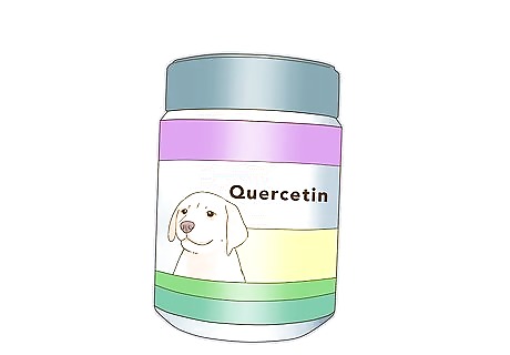 Add allergy-fighting supplements to your dog’s diet. Quercetin is a widely recommended bioflavonoid that helps reduce inflammation and itching in response to allergies. Bromelain and papain, meanwhile, help increase the absorption of quercetin, making it more effective. Pick these supplements up from a vitamin shop or your local vet and make them part of your dog’s daily diet. The right dosage of each supplement will depend on the weight and breed of your dog. Follow the instructions on the side of the pill bottle to calculate what dosage is right for your dog. Combine multiple supplements for best results, unless the instructions that come with your supplements say otherwise. Omega-3 fatty acids are also effective at reducing inflammation caused by allergies. Good sources of omega-3 include krill oil, salmon oil, and tuna oil.