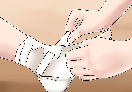 Get a splint put on your child’s heel and leg. Splints help to stabilize the affected area, in this case the heel, by giving the area support. Splints generally use a hard, flat object that you press up against the heel to achieve this. This hard, flat object is then secured with elastic bandages. Your doctor will most likely apply the splint the first time, and will teach you how to apply it to your child’s heel in the future.