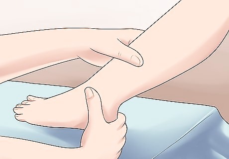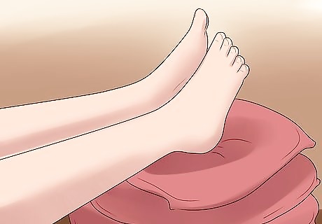 Elevate your child’s foot. Elevating the affected heel can help to reduce swelling in the area. To elevate the heel, you can sit your child down in a chair and prop her leg up in front of her on another chair with a cushion underneath it. The goal is to elevate the heel so that it is above your child’s heart, thereby restricting blood flow to the area, which helps to reduce swelling. If your child is lying down, place several pillows under your child’s heel so that her heel is above her heart.