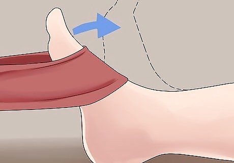 Try an inversion exercise. This exercise focuses on turning the affected foot inward in the direction of the midline of your child’s body. To do this exercise: Loop a resistance band around a couch or other stable object. Sit down with legs extended forward. Place the resistance band tightly around the top of the foot. Move the foot inward, rotating the ankle joint towards the other leg. Hold the position for 5 to 10 seconds before returning to the normal position. Repeat the cycle 10 to 20 times on each ankle.