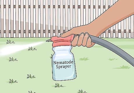 Introduce nematodes to your yard to eat any fleas living there. Nematodes are microscopic worms that live in your yard and will eat any fleas that they come across. Use a nematode spray applicator to spray them over your lawn at a ratio of 50 million for every 2,000 square feet (190 m) of yard space for heavy infestations. Nematodes are natural, safe, and you don’t have to do anything to take care of them. Talk about easy pets! Look for nematodes at nurseries, gardening supply stores, and online.