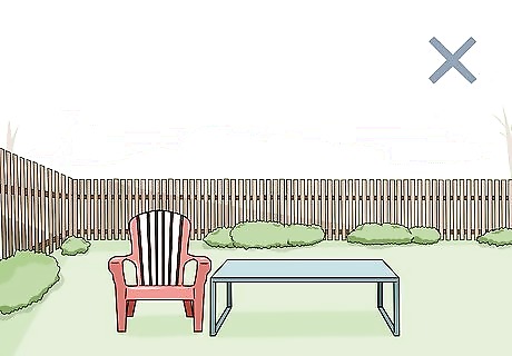 Clear out any debris or furniture from your yard. Remove any lawn furniture such as chairs or tables so you can apply the pesticide over your entire yard. Rake up leaves, put them into bags, and dispose of them to get rid of any fleas living on them. If you have stacks of firewood, move them so you can treat the ground beneath them. Fleas love to live in debris such as piles of leaves or loose mulch, so clean them up as well before you apply your pesticide.