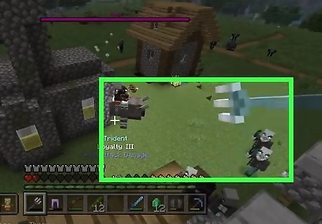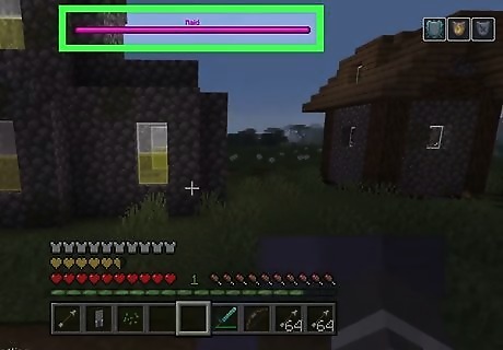 Wait for the impact to hit. After killing the Pillager captain, you'll be afflicted with the Bad Omen effect and will trigger a raid as soon as you step foot in a village. Be aware that this may take a while as the illagers have to spawn nearby and make their way into the village. Listen for the Pillager raid horn and look on the top of the screen for the purple boss bar. This is the raid health bar and will show the number of mobs left when the amount gets low enough.