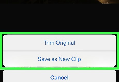 Select a saving option. Tap Trim Original to change the original video file. Tap Save as New Clip to create a new file for the trimmed video. Choose this option if you want to keep the original video as well as the new trimmed version.