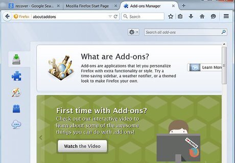 Open the Add-ons Window by clicking the "Tools" menu and selecting "Add-ons"