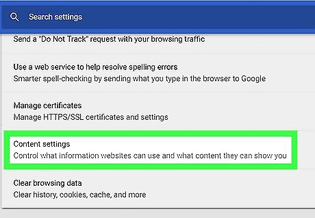 Scroll down and click Content Settings. It's near the bottom of the “Privacy and Security” section.