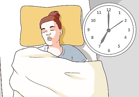 Go to sleep at the same time every night. Your body will come to expect the routine of relaxing in bed at the same time every night. If you get up at the same time, this will help you be sleepy at bedtime. If you sleep later, you’re unlikely to be tired in the evening. If you’re struggling with insomnia, stay awake later so that you’re more likely to go to sleep when you go to bed. You can understand this if you think about the way you’re probably hungry at about the same time every day. You’ve trained your body to expect meals in the morning, noon-ish, and again in the evening. Sleep can work in the same way