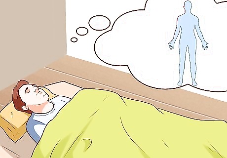 Do a focused mindfulness exercise. As you lie in bed, imagine the outline of your body. Slowly trace your body’s outline in your head. Feel the way your body feels against the bed. Feel the way your head feels against the pillow. Then move your attention down your body, one body part at a time. Move your attention down one arm, all the way to your hand, finishing at the end of your fingers. Then repeat the same attention, moving down your other arm. Notice anyplace in your body that feels active, and try to relax any tightness that you’re holding there. Don’t worry about falling asleep before you finish this exercise.