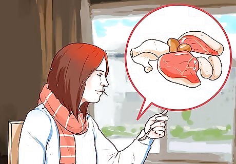 Eat a healthy diet. Avoid eating food that’s likely to cause you stomach upset as you try to unwind from the day. Some experts suggest eating your largest meal at dinnertime if you have trouble sleeping, but don’t eat so much that you’re uncomfortable when you’re trying to sleep. Ideally, you’ll be neither hungry nor full as you try to get to sleep. Avoid late-night snacking on high-sugar, high-fat foods. If you feel the need to snack at night, stick to high-protein, low-sugar options. For example, a glass of milk, a protein bar, or a spoonful of peanut butter can satisfy your craving while not interfering with your sleep.
