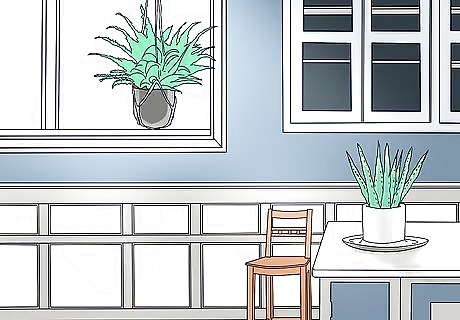Spruce up the kitchen space with some potted plants. House plants can add visual interest and a vibrant feel to any room in your house, but their green, bright colors can be particularly striking in the kitchen. Pop a cactus or fern on the windowsill where it can get plenty of sun, or hang a potted plant from an empty patch of ceiling space. If you have pets, be careful about which plants you put in your house. Aloe vera, American holly, and tulips, for example, are all toxic to cats and dogs.
