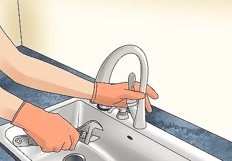 Update your sink and faucet. A short or low-hanging faucet head can cause major pains in the kitchen, making everyday tasks, such as washing dishes, drying, cooking, and cleaning, consistently awkward. With the addition of a new sink or faucet, you can make a world of difference in your day-to-day drudgery. Just be sure to ask your landlord before purchasing or installing anything. Installing a new faucet is relatively easy, but you might not want to take it on if you’re not handy around the house. Hire a handyman instead to make sure your plumbing alterations don’t create any more problems than you had before.
