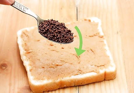 Add texture to the filling. You can add flavor and texture by sprinkling toasted nuts, pretzels, granola, potato chips, or chocolate sprinkles over the fillings. Try just adding one or two of these so you don't overwhelm the flavors of the sandwich. Try to add the crunchy ingredients right before you eat the sandwich. Some of these (like the potato chips) may become soggy if they sit on the sandwich for a long time.