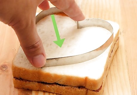 Cut the sandwich into shapes. You can serve small peanut butter and jelly sandwiches by cutting them into small shapes. Just take a cookie cutter and cut near the center and sides of the sandwich, avoiding the crusts. You can use stars, hearts, ovals, or other fun shapes. You can serve the small sandwich bites on lollipop sticks. Push a lollipop stick into each sandwich bite so that guests can pick one up for a cute appetizer.